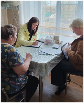Проведена проверка качества обслуживания, объемы и сроки оказания социальных услуг гражданам пожилого возраста и инвалидам, состоящим на социальном обслуживании на дому на территории с. Богословка и с. Васильевка.